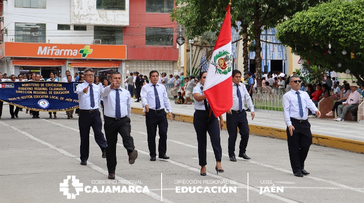 La UGEL Jaén, liderada por su Director, Dr. Zacarías Espinoza Cano, participó de este acto cívico, renovando así su identidad y compromiso institucional en beneficio de nuestros futuros ciudadanos.